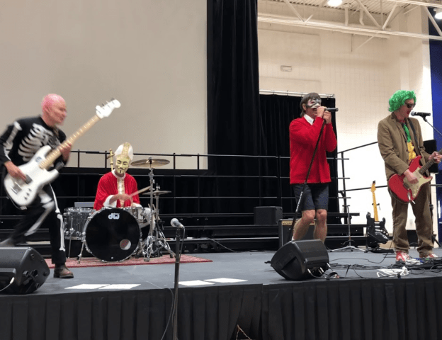 Red Hot Chili Peppers surprised students at Viewpoint School in Calabasas, California with an impromptu Halloween concert. The band, suitably decked in Halloween garb, gave