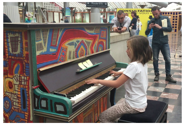 Diane and Camille Lambiet are young musicians who have been turning heads with their impromptu street performances. The younger sister, Diane, often plays on street pianos